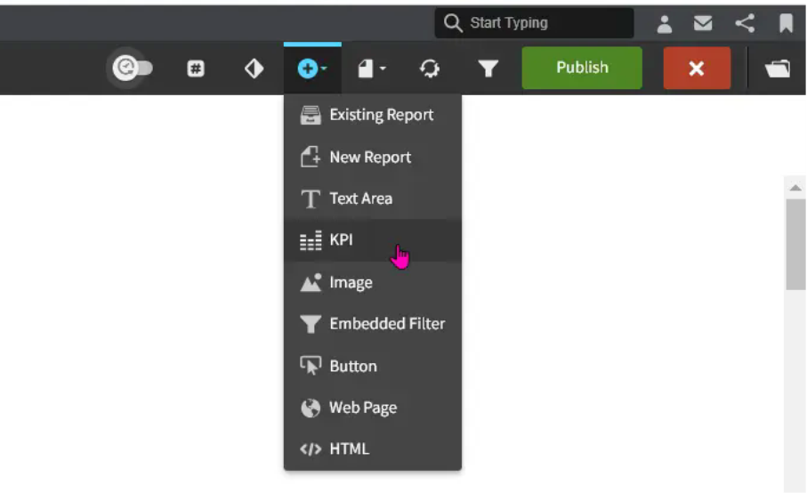 - Click the plus symbol in the upper ribbon and select KPI.